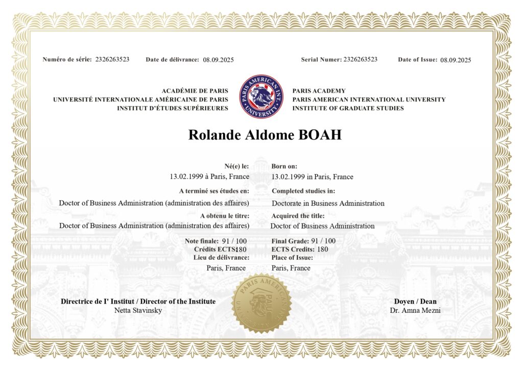 Elevate your career with the prestigious Doctor of Business Administration (DBA) program from the Paris American International University (PAIU).