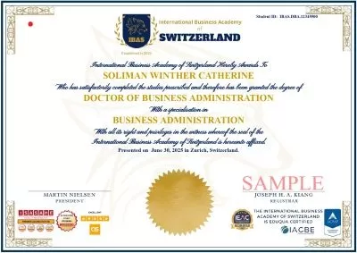 Participants who fulfill the program requirements will receive a Doctor of Business Administration (DBA) Degree from The International Business Academy of Switzerland (IBAS).