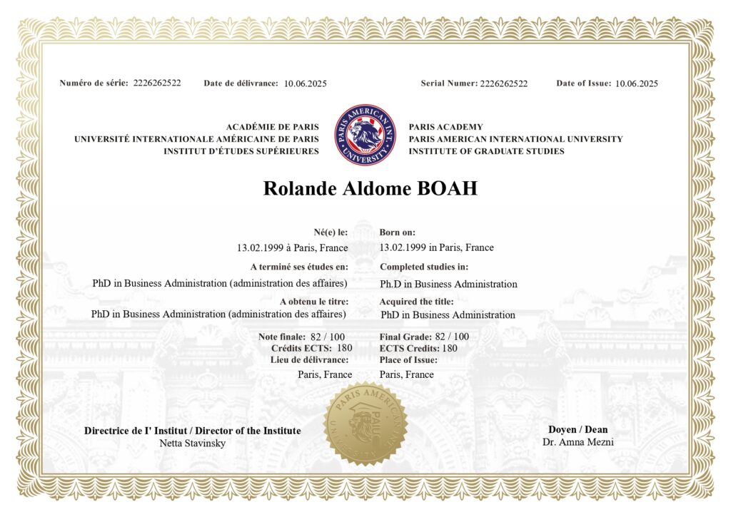 Participants who fulfill the program requirements will receive a Doctor of Philosophy (PhD) from PAIU.