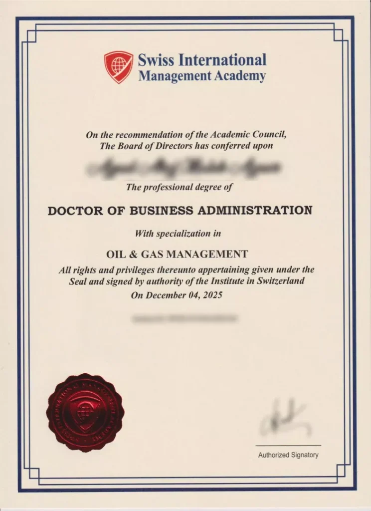 Participants who fulfill the program requirements will receive a Dual Program-MBA & DBA Degree from Swiss International Management Academy, Switzerland.