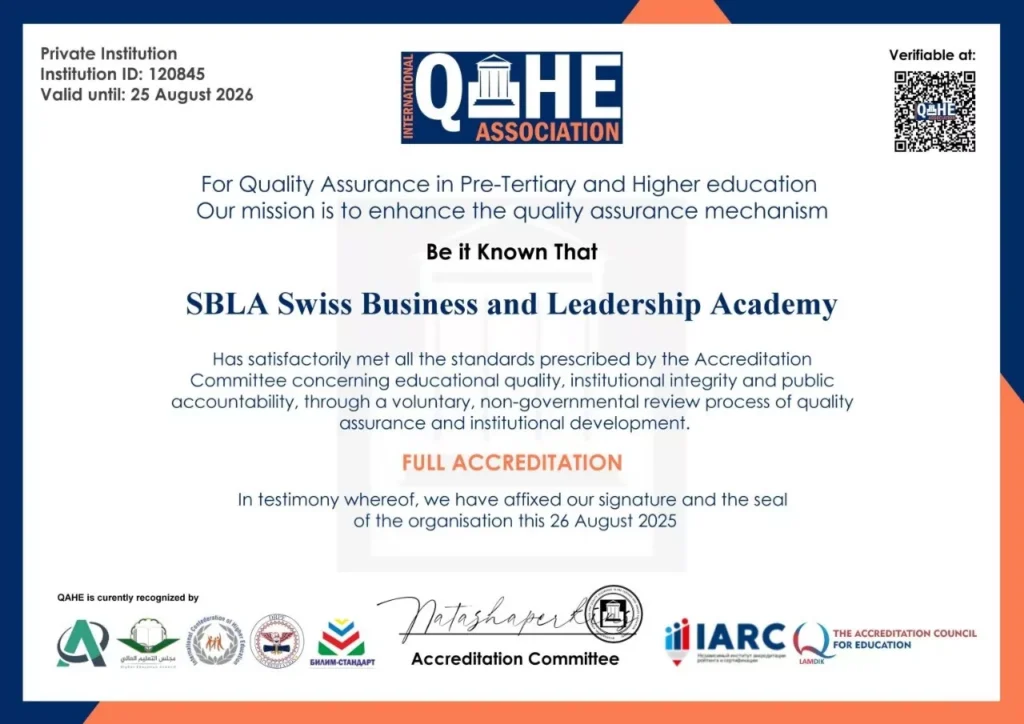 The Swiss Business and Leadership Academy (SBLA), based in Baar, Switzerland, is a premier online business school offering internationally recognized programs such as BBA, MBA, and DBA. SBLA is committed to delivering Swiss-quality education through a fully digital platform, enabling learners across the globe to pursue academic excellence without geographic barriers. The academy’s curriculum emphasizes practical business knowledge, ethical leadership, and global perspective—supported by experienced international faculty.