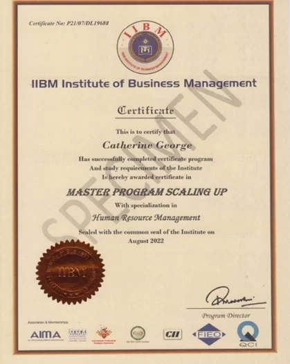 On completion of Scaling up Master's Program achieve a rewarding Certificate by IIBM India